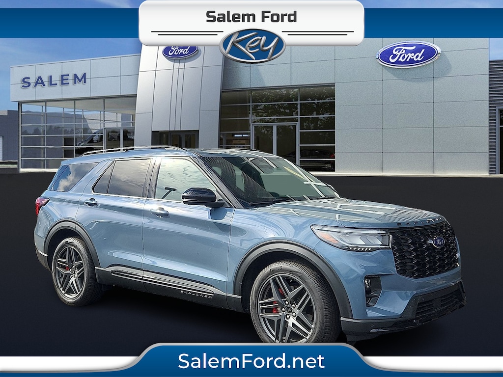 CARFAX One-Owner. Certified. Vapor Blue 2025 Ford Explorer ST 4WD 10-Speed Automatic 3.0L EcoBoost V6 *ONE OWNER* *CLEAN HISTORY REPORT* ***PLEASE CALL 603-898-9766*** 4WD Apple CarPlay/Android Auto Equipment Group 400A Standard Package Panoramic Vista Roof w/Power Shade Radio: B&O Sound System by Bang & Olufsen.At Salem Ford you win! Recent Arrival! Odometer is 2431 miles below market average!Ford Gold Certified Details: * Powertrain Limited Warranty: 84 Month/100000 Mile (whichever comes first) from original in-service date * Warranty Deductible: $100 * Transferable Warranty * 172 Point Inspection * Limited Warranty: 12 Month/12000 Mile (whichever comes first) after new car warranty expires or from certified purchase date * and 22000 FordPass Rewards Points to use toward first two maintenance visits * Roadside Assistance * Vehicle HistoryWe make the car buying process very simple by displaying the lowest price on the window. We price our vehicles more aggressively than anyone else in the area. For that reason we're proud to display it on every vehicle's window. We believe there is more to buying a vehicle than worrying about the price. For that reason Key Auto has simplified that process for our customers. When we price a vehicle we take the following into consideration: 1) market conditions 2) what the area dealers are selling them for 3) Kelly Blue Book* retail. This way when you leave a Key Auto Dealership you're confident you've received the absolute best deal.