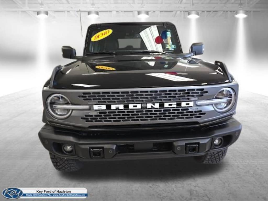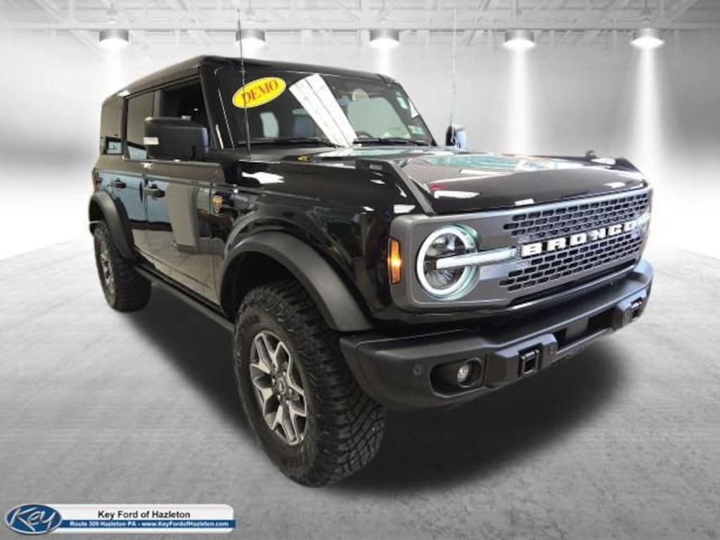 KEY FORD OF HAZLETON is proud to present you with another True Market Priced Vehicle. This 2025 Ford Bronco Badlands is loaded with the following Factory Options: Equipment Group 334A Lux Package (360-Degree Camera, Adaptive Cruise Control, Connected Navigation, Evasive Steering Assist, Front Parking Sensors, Information on Demand Panel, Radio: B&O Sound System by Bang & Olufsen, Sideview Mirrors, and Universal Garage Door Opener), 4-Wheel Disc Brakes, 4.7 Axle Ratio, 7 Speakers, ABS brakes, Air Conditioning, Alloy wheels, AM/FM radio: SiriusXM with 360L, AM/FM Stereo, Auto High-beam Headlights, Auto-dimming Rear-View mirror, Brake assist, Compass, Delay-off headlights, Driver door bin, Driver vanity mirror, Dual front impact airbags, Dual front side impact airbags, Electronic Stability Control, Emergency communication system: 911 Assist, Engine Block Heater, Exterior Parking Camera Rear, Front anti-roll bar, Front Bucket Seats, Front Center Armrest, Front fog lights, Front reading lights, Front wheel independent suspension, Fully automatic headlights, Hard Top Sound Deadening Headliner, Heated door mirrors, Heated front seats, Heated steering wheel, Illuminated entry, Integrated roll-over protection, Leather Shift Knob, Leather-Trimmed/Vinyl Bucket Seats, Low tire pressure warning, Marine Grade Vinyl Heated Bucket Seats, Occupant sensing airbag, Outside temperature display, Overhead airbag, Overhead console, Panic alarm, Passenger door bin, Passenger vanity mirror, Power door mirrors, Power steering, Power windows, Radio data system, Rear-Window Defroster & Washer, Remote keyless entry, Security system, Shadow Black Painted Hard Top, SiriusXM w/360L, Speed control, Split folding rear seat, Steering wheel mounted audio controls, SYNC 4, Tachometer, Telescoping steering wheel, Tilt steering wheel, Traction control, Trip computer, Upgraded Carpet Floor Mats, Variably intermittent wipers, and Voltmeter!! Price includes: $2750 - Retail Customer Cash. Exp. 04/30/2026