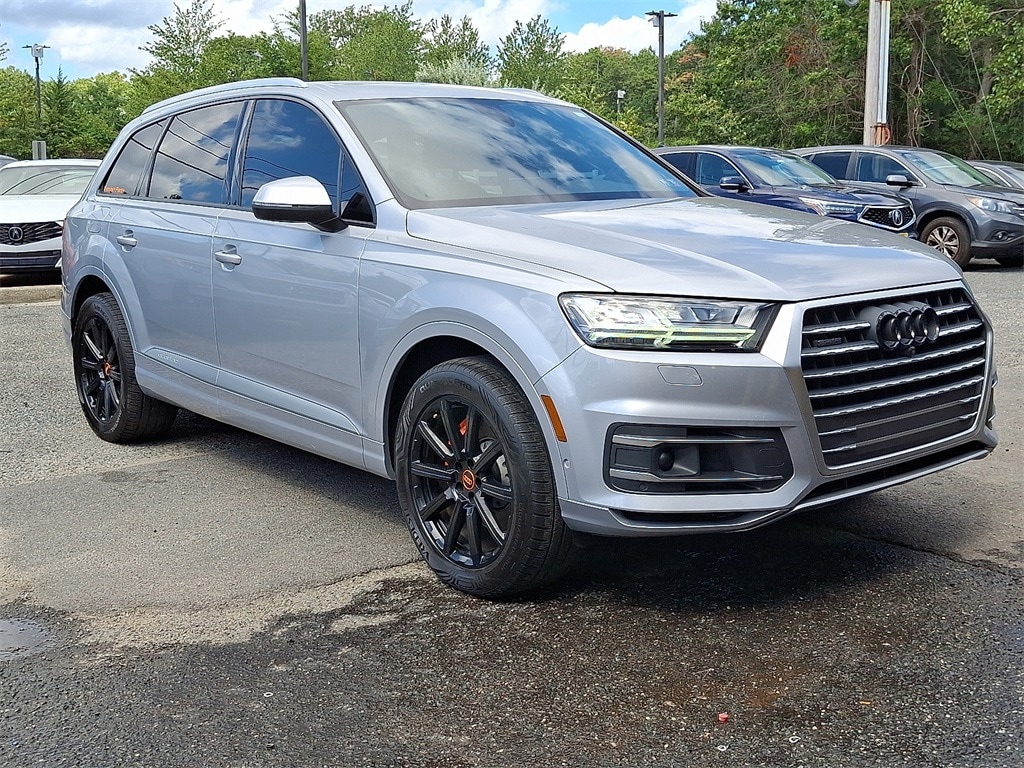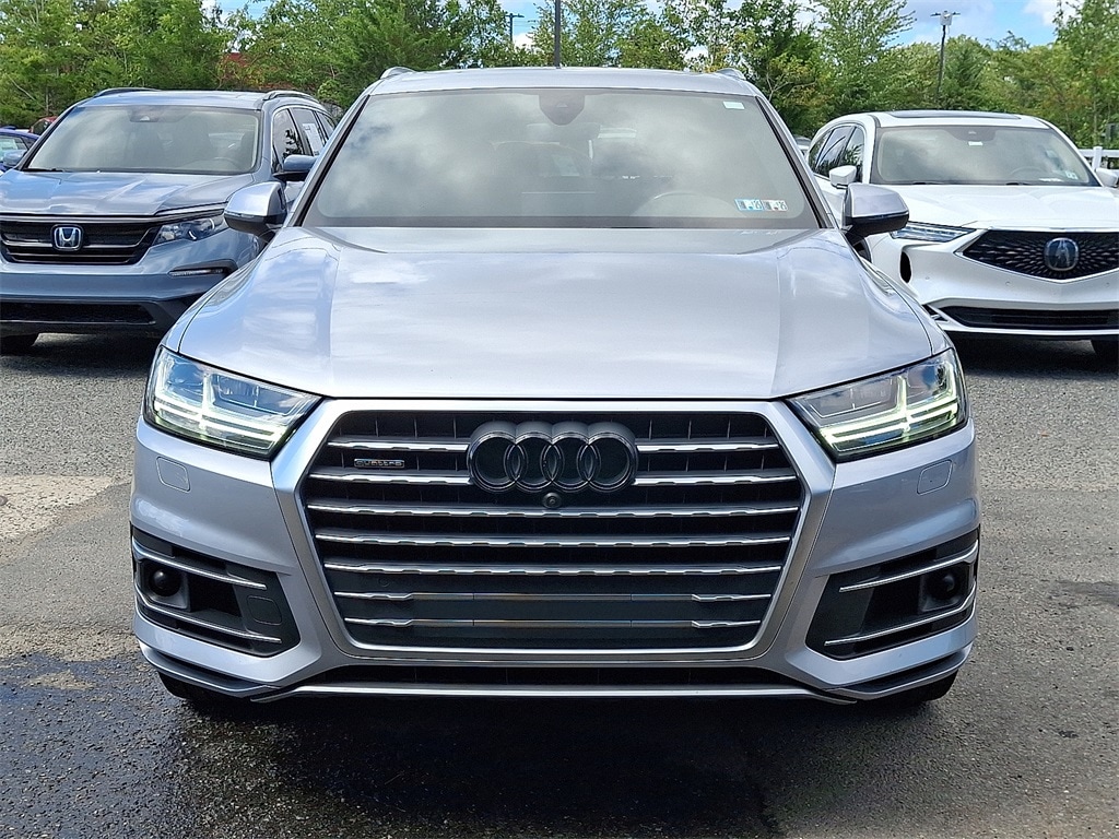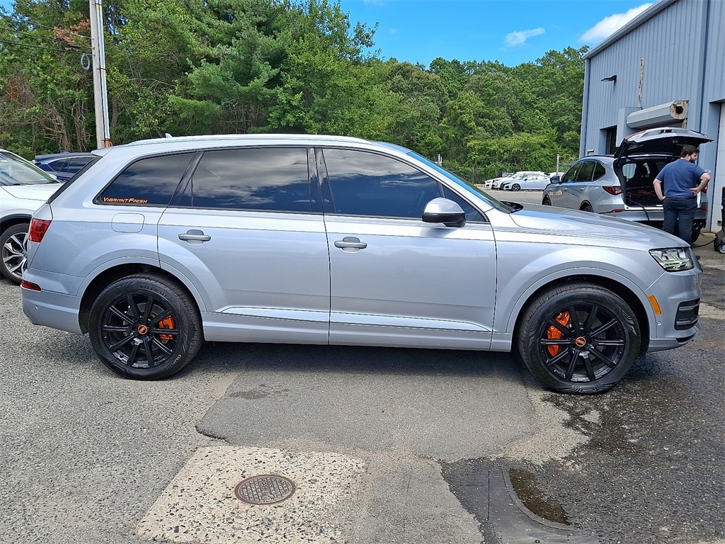 This Q7 55 Premium is nicely equipped with 10 Speakers, 3.204 Axle Ratio, 3rd row seats: bench, 4-Wheel Disc Brakes, ABS brakes, Air Conditioning, Alloy wheels, AM/FM radio: SiriusXM, Audi smartphone interface (Apple CarPlay/Android Auto), Auto-dimming Rear-View mirror, Automatic temperature control, Brake assist, Bumpers: body-color, CD player, Compass, Delay-off headlights, Driver door bin, Driver vanity mirror, Driver's Seat Mounted Armrest, Dual front impact airbags, Dual front side impact airbags, Electronic Stability Control, Emergency communication system: Audi connect CARE, Exterior Parking Camera Rear, Four wheel independent suspension, Front anti-roll bar, Front Bucket Seats, Front dual zone A/C, Front fog lights, Front reading lights, Fully automatic headlights, Garage door transmitter: HomeLink, Heated door mirrors, Heated Front Bucket Seats, Heated front seats, High intensity discharge headlights: Xenon plus, Illuminated entry, Leather Seating Surfaces, Leather Shift Knob, Leather steering wheel, Low tire pressure warning, Memory seat, Navigation system: MMI Navigation plus, Occupant sensing airbag, Outside temperature display, Overhead airbag, Panic alarm, Passenger door bin, Passenger seat mounted armrest, Passenger vanity mirror, Power door mirrors, Power driver seat, Power Liftgate, Power moonroof, Power passenger seat, Power steering, Power windows, Radio data system, Radio: Audi MMI Navigation Plus, Rain sensing wipers, Rear air conditioning, Rear anti-roll bar, Rear fog lights, Rear reading lights, Rear seat center armrest, Rear window defroster, Rear window wiper, Remote keyless entry, Roof rack: rails only, Security system, Speed control, Speed-sensing steering, Split folding rear seat, Spoiler, Steering wheel memory, Steering wheel mounted audio controls, Tachometer, Telescoping steering wheel, Tilt steering wheel, Traction control, Trip computer, Turn signal indicator mirrors, Variably intermittent wipers, Wheels: 19" 5-V-Spoke Design, and Wheels: 20" 10-Spoke-Star Design Bi-Color.
