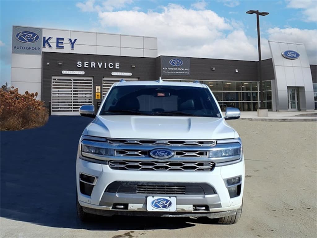 Key Ford of Rockland is proud to present you with another True Market Priced Pre-Owned Vehicle. Transparent Pricing Of $ 51020 !! This 2022 Ford Expedition Platinum is loaded with the following Factory Options: Equipment Group 600A Standard Package, 4WD, 4-Wheel Disc Brakes, ABS brakes, Adaptive suspension, Four wheel independent suspension, Heated/Ventilated Leather Front Captain's Chairs, Navigation system: Connected Navigation, Power Liftgate, Power moonroof, Speed-sensing steering, and Traction control Equipment Group 600A Standard Package, 4WD, 4-Wheel Disc Brakes, ABS brakes, Adaptive suspension, Four wheel independent suspension, Heated/Ventilated Leather Front Captain's Chairs, Navigation system: Connected Navigation, Power Liftgate, Power moonroof, Speed-sensing steering, Traction control, 1st & 2nd Row Floor Liners w/Carpet Mats, 22 Speakers, 3rd row seats: split-bench, Active Park Assist 2.0 Removal, Adjustable pedals, Air Conditioning, Alloy wheels, AM/FM radio: SiriusXM with 360L, Auto High-beam Headlights, Auto-dimming door mirrors, Auto-dimming Rear-View mirror, Automatic temperature control, Brake assist, Bumpers: body-color, Compass, Delay-off headlights, Driver door bin, Driver vanity mirror, Dual front impact airbags, Dual front side impact airbags, Electronic Stability Control, Emergency communication system: SYNC 4 911 Assist, Exterior Parking Camera Rear, Front anti-roll bar, Front Bucket Seats, Front Center Armrest, Front dual zone A/C, Front fog lights, Front reading lights, Fully automatic headlights, Garage door transmitter, Genuine wood console insert, Genuine wood dashboard insert, Genuine wood door panel insert, Hands-Free Foot-Activated Feature Removal, Heated door mirrors, Heated front seats, HEATED Leather steering wheel, Heated rear seats, Heated steering wheel, Illuminated entry, Low tire pressure warning, Memory seat, Occupant sensing airbag, Outside temperature display, Overhead airbag, Overhead console, Panic alarm, Passenger door bin, Passenger vanity mirror, Pedal memory, Power door mirrors, Power driver seat, Power passenger seat, Power steering, Power windows, Radio data system, Radio: B&O Unleashed Sound System by Bang & Olufsen, Rain sensing wipers, Rear air conditioning, Rear anti-roll bar, Rear audio controls, Rear reading lights, Rear window defroster, Rear window wiper, Reclining 3rd row seat, Remote keyless entry, Second Row Power Windows Removal, Security system, SiriusXM w/360L, Speed control, Speed-Sensitive Wipers, Split folding rear seat, Spoiler, Std Lux Lth Trim Fr Seats w/Multi-Contour Seat Del, Steering wheel memory, Steering wheel mounted audio controls,