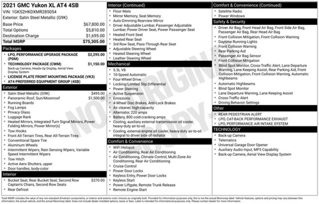 Key Chrysler Dodge Jeep Ram of Rochester is proud to present you with another True Market Priced Pre-Owned Vehicle. Transparent Pricing Of $ 44599 !! This 2021 GMC Yukon XL AT4 is loaded with the following Factory Options: 4WD License Plate Front Mounting Package, Performance Upgrade Package (LPO) (Cat-Back Performance Exhaust (LPO) and Performance Air Intake System (LPO)), Preferred Equipment Group 4SB (12-Way Power Seat Adjusters, 2 Presets For Outside Rearview Mirrors, 3rd Row 60/40 Power-Folding Split-Bench Seat, Black Roof-Mounted Luggage Rack Side Rails, Bose 9-Speaker Stereo Audio System Feature, Bright Front & Rear Door Sill Plates, Front High-Approach Angle Fascia, Hands-Free Power Programmable Rear Liftgate, Heated & Ventilated Driver & Front Passenger Seats, Heated 2nd Row Outboard Position Seats, Heated Automatic Steering Wheel, Heated Driver & Front Passenger Seats, Heavy-Duty Air Filter, Hill Descent Control, Inside Rear-View Auto-Dimming Mirror, Outside Heated Power-Adjustable Mirrors, Power Release 2nd Row 60/40 Split-Folding Bench Seat, Power Tilt & Telescopic Steering Column, Red Horizontal-Mounted Recovery Hooks, Safety Alert Seat, and Universal Home Remote), Technology Package (15" Diagonal Multi-Color Head-Up Display, HD Surround Vision, and Rear Pedestrian Alert), 4WD, 3.23 Rear Axle Ratio, 3rd row seats: split-bench, 4-Wheel Disc Brakes, 9 Speakers, ABS brakes, Adaptive suspension, Air Conditioning, Alloy wheels, AM/FM radio: SiriusXM with 360L, Apple CarPlay/Android Auto, Auto High-beam Headlights, Auto-dimming door mirrors, Auto-dimming Rear-View mirror, Auto-leveling suspension, Automatic Emergency Braking, Automatic temperature control, Brake assist, Bumpers: body-color, Compass, Delay-off headlights, Driver door bin, Driver vanity mirror, Dual front impact airbags, Dual front side impact airbags, Dual-Pane Panoramic Power Sunroof, Electronic Stability Control, Emergency communication system: OnStar and GMC connected services capable, Following Distance Indicator, Forward Collision Alert, Four wheel independent suspension, Front & Rear Park Assist, Front anti-roll bar, Front Bucket Seats, Front Center Armrest, Front dual zone A/C, Front fog lights, Front Pedestrian Braking, Front reading lights, Fully automatic headlights, Garage door transmitter, HD Radio, Heated door mirrors, Heated front seats, Heated rear seats, Heated steering wheel, Illuminated entry, IntelliBeam Automatic High Beam On/Off, Lane Change Alert w/Side Blind Zone Alert, Lane Keep Assist w/Lane Departure Warning, Leather steering wheel, Low tire pressure warning, Magnetic Ride Control Suspension, Memory seat, Occupant sensing airbag, Outside temperature display, Overhead airbag, Overhead console, Panic alarm, Passenger door bin, Passenger vanity mirror, Perforated Leather Seating Surfaces, Power door mirrors, Power driver seat, Power Liftgate, Power passenger seat, Power Release 2nd Row Bucket Seats, Power steering, Power windows, Radio: AM/FM/SiriusXM, Rain sensing wipers, Rear air conditioning, Rear anti-roll bar, Rear Cros