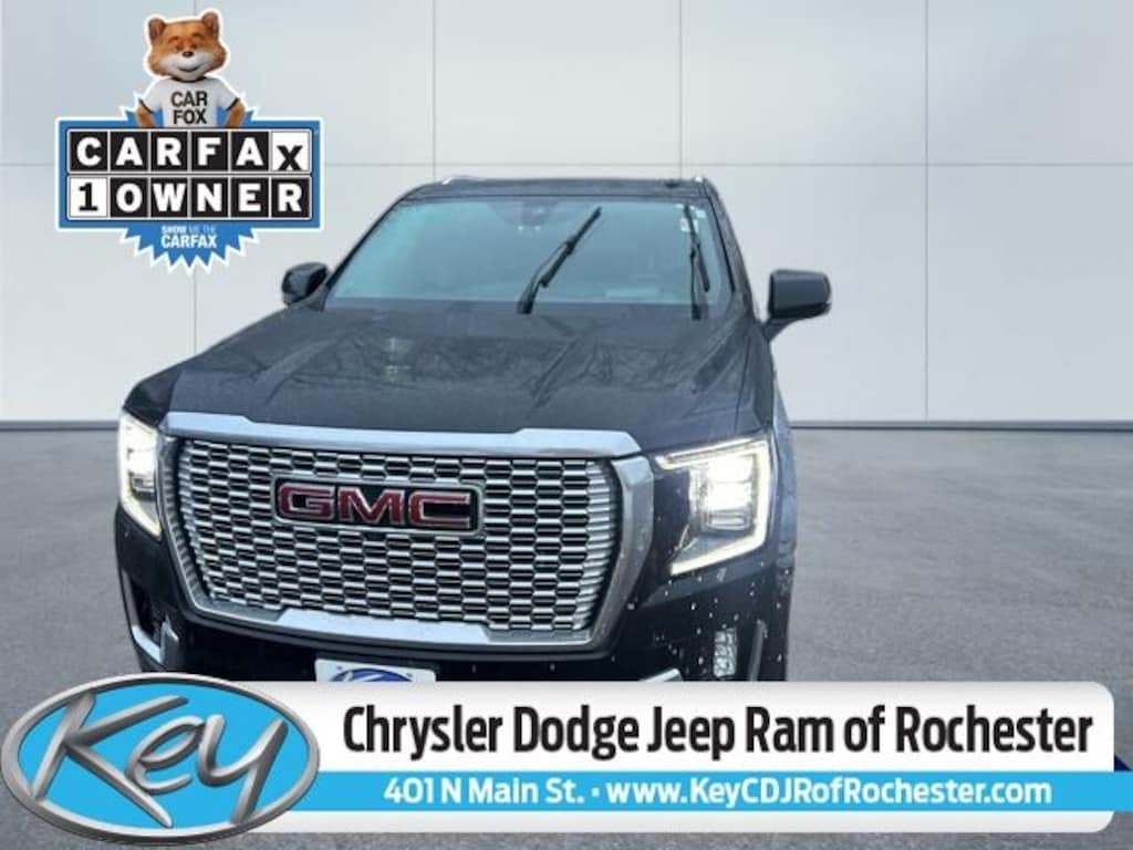 Key Chrysler Dodge Jeep Ram of Rochester is proud to present you with another True Market Priced Pre-Owned Vehicle. Transparent Pricing Of $ 59999 !! This 2022 GMC Yukon Denali is loaded with the following Factory Options: 4WD License Plate Front Mounting Package, Preferred Equipment Group 5SA (15" Diagonal Multi-Color Head-Up Display, 2 Presets For Outside Rearview Mirrors, 3 Years of GMC Connected Services, 3rd Row 60/40 Power-Folding Split-Bench Seat, Automatic Stop/Start, Bright Front & Rear Door Sill Plates, Chrome Door Handles w/Body-Color Strip, Dual Exhaust System, Floor Console, Galvano Bodyside Moldings, Hands-Free Power Programmable Rear Liftgate, HD Surround Vision, Heated & Ventilated Driver & Front Passenger Seats, Heated 2nd Row Outboard Position Seats, Heated Driver & Front Passenger Seats, Heated Steering Wheel, Hill Descent Control, Inside Rear-View Auto-Dimming Mirror, Outside Heated Power-Adjustable Mirrors, Power Release 2nd Row Bucket Seats, Power Tilt & Telescopic Steering Column, Rear Pedestrian Alert, Safety Alert Seat, Start/Stop System Disable Button, Universal Home Remote, and Wireless Charging), 4WD, 14 Speakers, 3.23 Rear Axle Ratio, 3rd row seats: split-bench, 4-Wheel Disc Brakes, ABS brakes, Adaptive suspension, Air Conditioning, Alloy wheels, AM/FM radio: SiriusXM with 360L, AM/FM Stereo, Apple CarPlay/Android Auto, Auto High-beam Headlights, Auto-dimming door mirrors, Auto-dimming Rear-View mirror, Auto-leveling suspension, Automatic Emergency Braking, Automatic temperature control, Bodyside moldings, Bose 14-Speaker Surround w/CenterPoint, Brake assist, Bumpers: body-color, Compass, Delay-off headlights, Driver door bin, Driver vanity mirror, Dual front impact airbags, Dual front side impact airbags, Dual-Pane Panoramic Power Sunroof, Electronic Stability Control, Emergency communication system: OnStar and GMC Connected Services capable, Following Distance Indicator, Forward Collision Alert, Four wheel independent suspension, Front & Rear Park Assist, Front anti-roll bar, Front Bucket Seats, Front Center Armrest, Front dual zone A/C, Front fog lights, Front Pedestrian Braking, Front reading lights, Fully automatic headlights, Garage door transmitter, Heads-Up Display, Heated door mirrors, Heated front seats, Heated rear seats, Heated steering wheel, Illuminated entry, IntelliBeam Automatic High Beam On/Off, Jet Black Interior Trim, Lane Change Alert w/Side Blind Zone Alert, Lane Keep Assist w/Lane Departure Warning, Leather steering wheel, Low tire pressure warning, Magnetic Ride Control Suspension, Memory seat, Navigation System, Not Equipped w/4-Way Driver & Fr Pass Pwr Lumbar, Not Equipped w/Fr & Rr Pk Assist/Rev Auto Braking, Not Equipped w/Steering Column Lock, Occupant sensing airbag, Outside temperature display, Overhead airbag, Overhead console, Panic alarm, Passenger door bin, Passenger vanity mirror, Perforated Leather Seating Surfaces, Power door mirrors, Power driver seat, Power Liftgate, Power passenger seat, Power steering, Power windows, Power-Retract