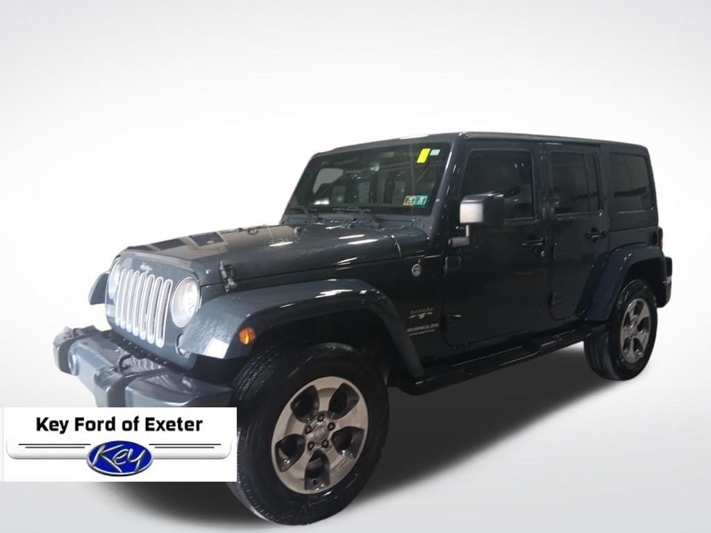 KEY FORD OF EXETER is proud to present you with another True Market Priced Pre-Owned Vehicle. Transparent Pricing Of $ 18999 !! This 2017 Jeep Wrangler Unlimited Sahara is loaded with the following Factory Options: Connectivity Group (Remote USB Port, Tire Pressure Monitoring Display, Uconnect Voice Command w/Bluetooth, and Vehicle Information Center), Dual Top Group (Black 3-Piece Hard Top, Delete Sunrider Soft Top, Freedom Panel Storage Bag, Premium Black Sunrider Soft Top, Rear Window Defroster, and Rear Window Wiper/Washer), Quick Order Package 24G (Body Color Appliques Front Bumper, Body Color Appliques Rear Bumper, and Body Color/Accent Color Grille), 18" x 7.5" Polished Satin Carbon Wheels, 3.21 Rear Axle Ratio, 4-Wheel Disc Brakes, 40GB Hard Drive w/28GB Available, 5-Year SiriusXM Travel Link Service, 6.5" Touchscreen Display, 8 Speakers, ABS brakes, Air Conditioning, Air Conditioning w/Auto Temperature Control, Air Filtering, Alloy wheels, AM/FM radio: SiriusXM, Audio Jack Input for Mobile Devices, Auto-dimming Rear-View mirror, Brake assist, CD player, Cloth Seats w/Adjustable Head Restraints, Compass, Driver door bin, Driver vanity mirror, Dual front impact airbags, Electronic Stability Control, Front anti-roll bar, Front Bucket Seats, Front Center Armrest w/Storage, Front fog lights, Front reading lights, Fully automatic headlights, GPS Navigation, Heated door mirrors, Heated Front Seats, Heavy Duty Suspension w/Gas Shocks (DISC), Humidity Sensor, Illuminated entry, Integrated roll-over protection, Leather steering wheel, Low tire pressure warning, Occupant sensing airbag, Outside temperature display, Panic alarm, Passenger door bin, Passenger vanity mirror, Power door mirrors, Power steering, Power windows, Radio data system, Radio: 130, Radio: 430 Nav, Rear anti-roll bar, Remote keyless entry, Remote Start System, Security system, SiriusXM Travel Link, Speed control, Split folding rear seat, Steering wheel mounted audio controls, Supplemental Front Seat Side Airbags, Tachometer, Tilt steering wheel, Traction control, Trip computer, and Variably intermittent wipers!!